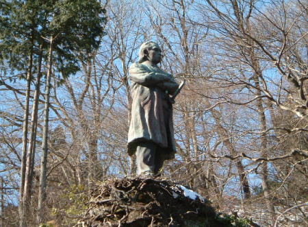 その東照宮がある日光山の山裾、神橋と呼ばれる橋のたもとに、刀を差して日光山を静かに見つめる一人の男の銅像が建てられています。