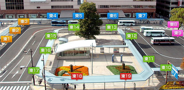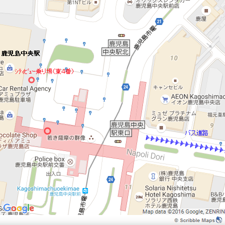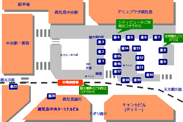 シティビューの乗り場ですが、鹿児島中央駅東口バスターミナルの「東4番」となります。(下記参照)