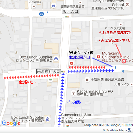 今和泉島津家の本邸は、現在の「南洲公園入口」バス停の付近にあり、現在は石塀のみ残されているだけですが、そこでしばし篤姫が生まれた時代に思いを偲ばせてみてはいかがでしょうか。(地図10参照)