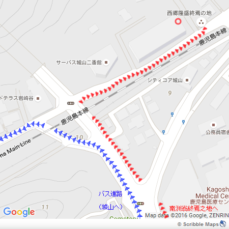 南洲翁終焉之地を見学後は、来た道をそのまま戻り、シティビューのバス停「薩摩義士碑前」を目指して下さい。